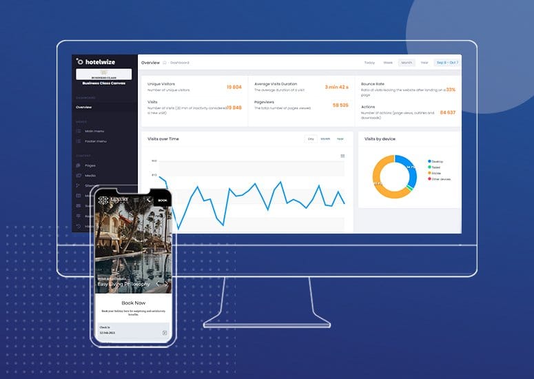 Η πλατφόρμα της Hotelwize δίνει στους επαγγελματίες του τουρισμού όλα τα τεχνολογικά χαρακτηριστικά που απαιτούνται για να έχουν το καλύτερο δυνατό αποτέλεσμα για το website του ξενοδοχείου τους.