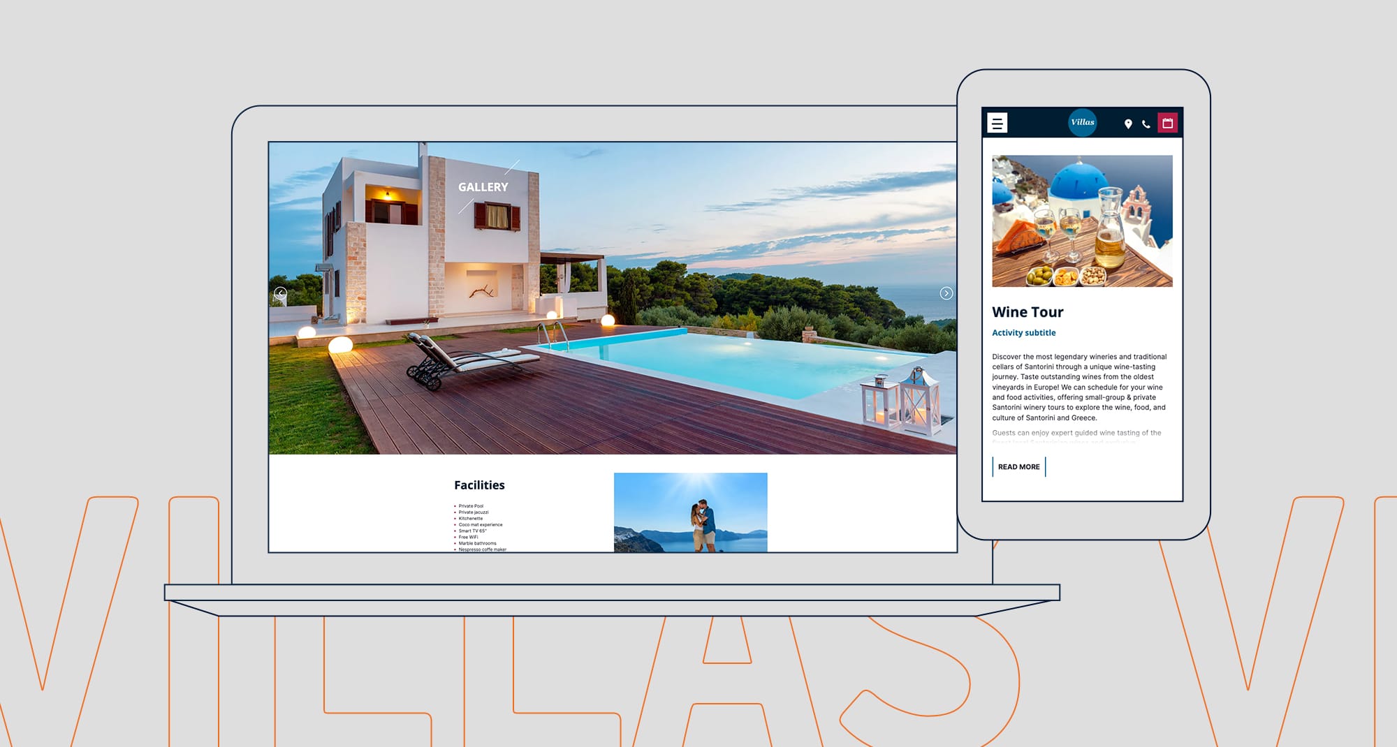 Με το Villas Canvas, η Hotelwize δημιούργησε ένα σχέδιο που είναι αισθητικά ελκυστικό και παράλληλα βελτιστοποιημένο για πωλήσεις. Τo design αναδεικνύει τα καλύτερα χαρακτηριστικά μιας βίλας, διασφαλίζοντας παράλληλα ότι η διαδικασία κράτησης είναι απρόσκοπτη και φιλική προς το χρήστη.