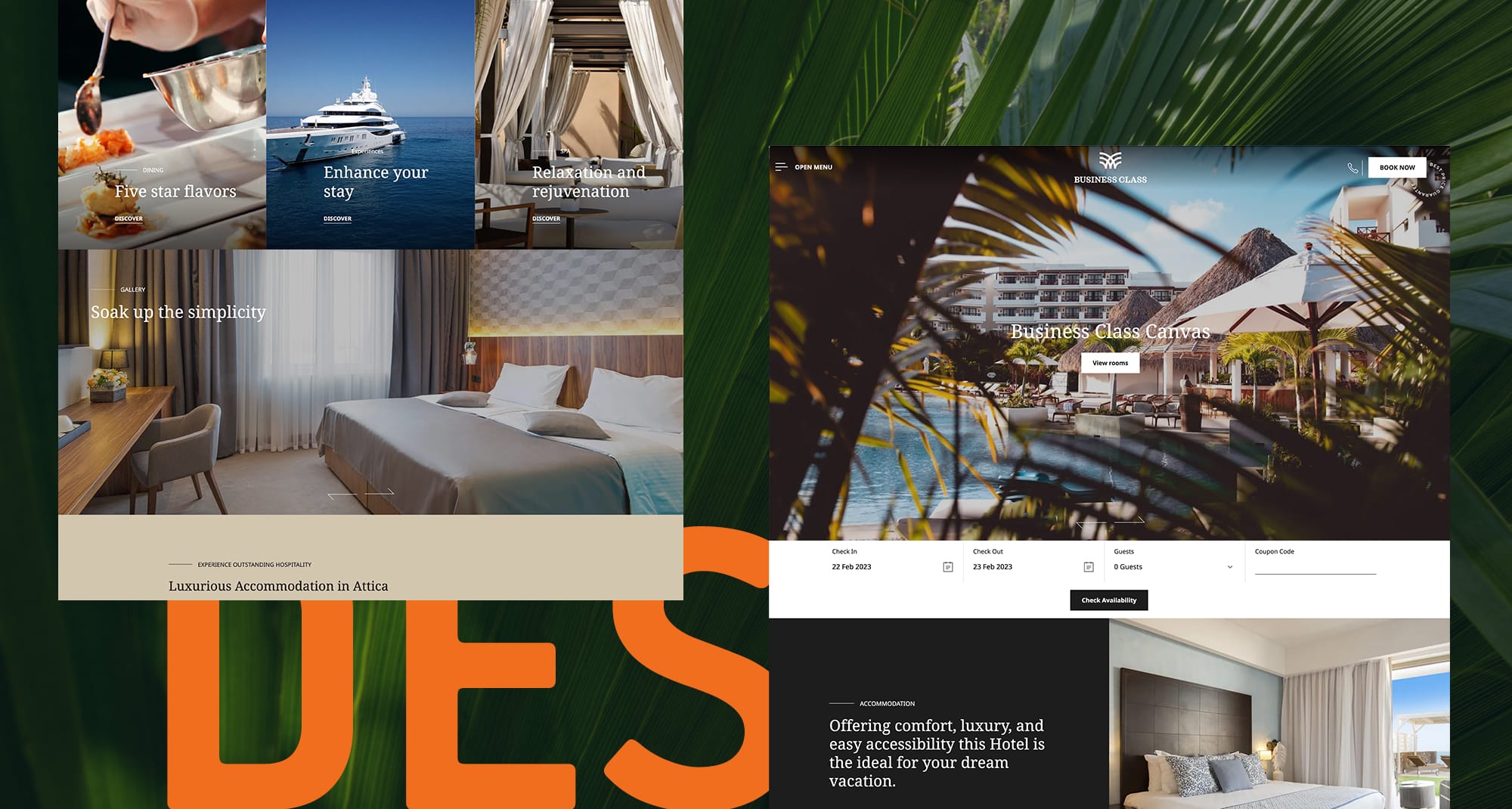 Τα website της Hotelwize αναπτύσσονται βάσει μίας σειράς από Canvas με εντυπωσιακά Βραβευμένα Design, αναπτυγμένα βάσει των προδιαγραφών Mobile-First. Κάθε Canvas εστιάζει στην αύξηση των μετατροπών με βελτιστοποιημένη δομή για τον εκάστοτε τύπο καταλύματος για το οποίο έχει δημιουργηθεί.