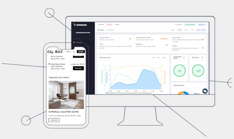 Τα website της Hotelwize αναπτύσσονται βάσει μίας σειράς από Canvas με εντυπωσιακά Βραβευμένα Design, αναπτυγμένα βάσει των προδιαγραφών Mobile-First. Κάθε Canvas εστιάζει στην αύξηση των μετατροπών με βελτιστοποιημένη δομή για τον εκάστοτε τύπο καταλύματος για το οποίο έχει δημιουργηθεί.